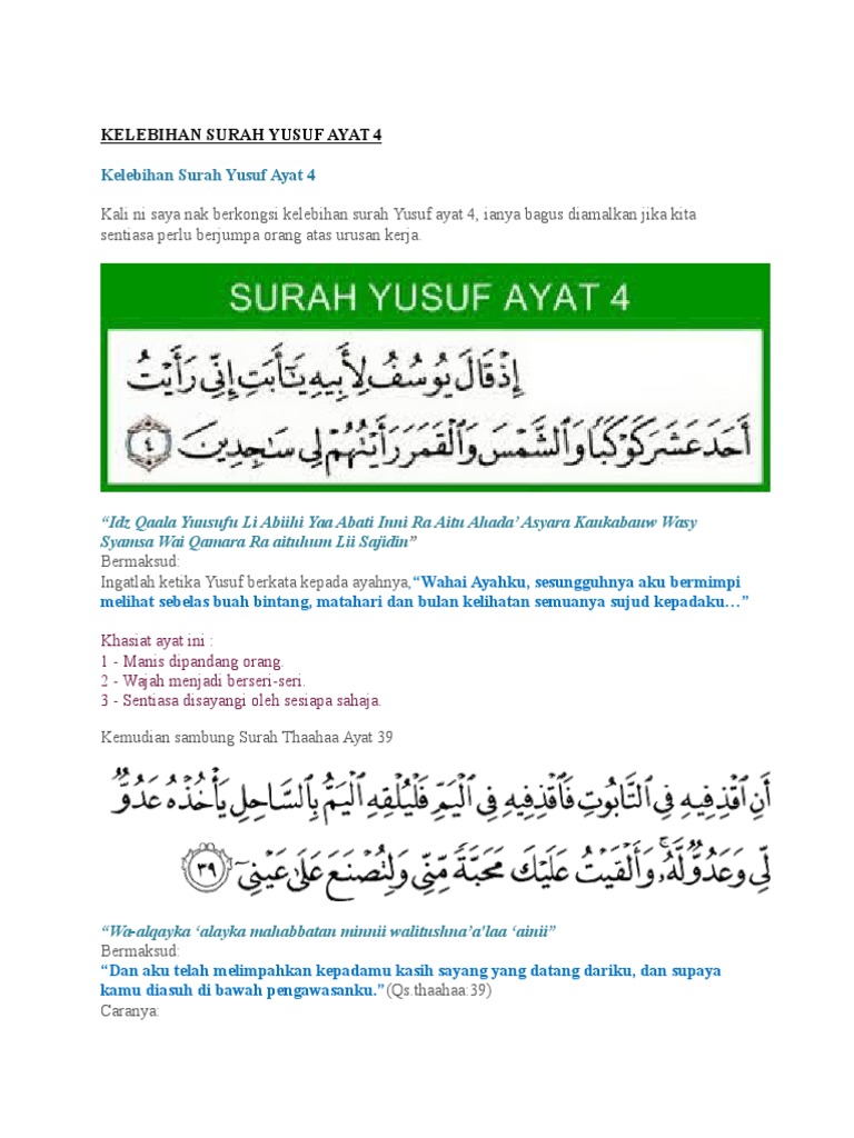 Kelebihan Surah Yusuf Ayat 4 Doa Bahagia Amal