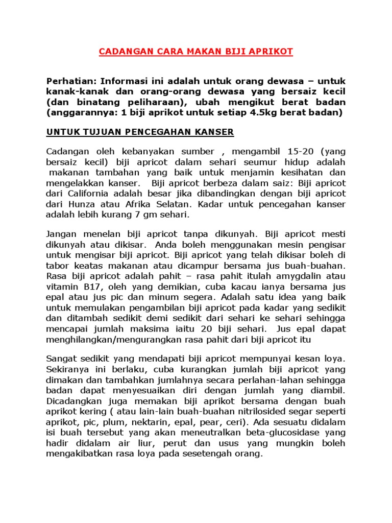 Panduan Pengambilan B17 Aprikot Untuk Rawatan Kanser Sentiasapanas