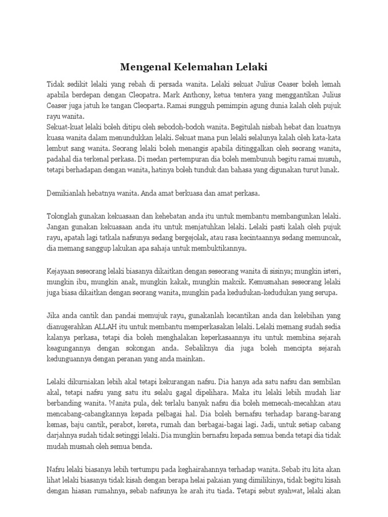 Kehidupan suami isteri perlulah seiring dan sejalan serta bersama sama menempuh pahit manis dalam perkahwinan. Jangan jadi wanita yang lemah dan senang ditipu. Rahsia kelemahan seorang lelaki january 14 2015 rahsia lelaki. Sebab itu kita akan lihat lelaki biasanya tidak kisah dengan berapa helai pakaian yang dimilikinya tidak begitu kisah dengan hiasan rumahnya.