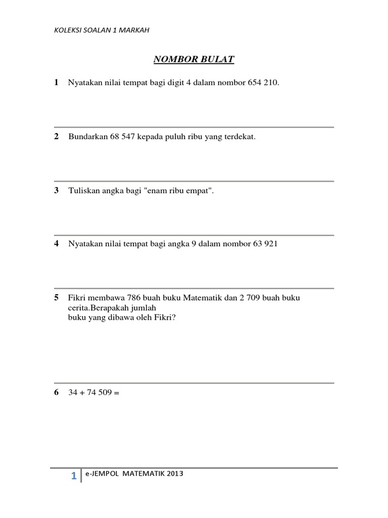 Posted by cikgu eim at 23 44. Sesuai untuk latih tubi matematik tahun 6. Staff skskr penaung pentadbiran tn hjhabib b c. Berbagai bentuk soalan objektif 4 pilihan.