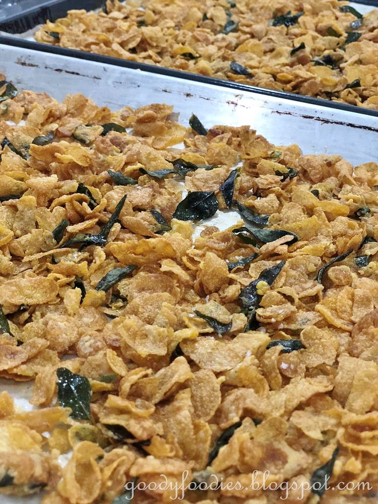 Masukkan curry leaves dan cili padi. Sikit tips untuk salted cornflakes lepas gaul dengan bahan bahan bakar dalam oven dalam 10 15 minit untuk kekalkan kerangupannya. 250g kellog s cornflakes 75g butter 3 4 batang daun kari 3 4 cili kering potong kecik2 1 2 sudu besar serbuk cili 1 sudu kecil serbuk kari daging 65g salted egg powder. Masukkan cili kering daun kari serbuk cili serbuk kari.