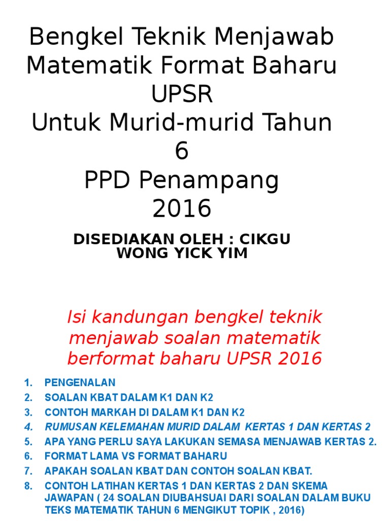 Soalan matematik tahun 6 kertas 2 format baru. Soalan ujian dan soalan peperiksaan tahun 6. Ujian pentaksiran sekolah rendah. Modul soalan matematik upsr kertas 1 2 skema jawapan 6 set modul upsr ujian pencapaian sekolah rendah. Calon wajib menduduki semua kertas peperiksaan bagi mata pelajaran yang didaftar.